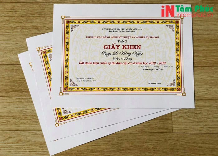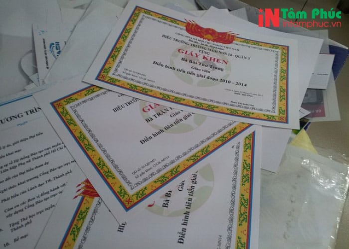 In Tâm Phúc là xưởng in lâu đời, có kinh nghiệm dày dặn trong lĩnh vực in ấn các loại giấy khen.