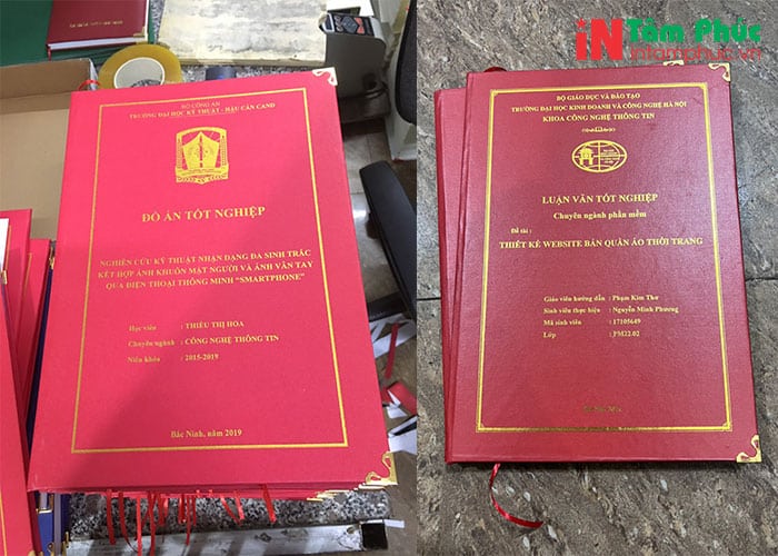 In Tâm Phúc là một địa chỉ in luận văn giá rẻ tại Hà Nội. Tâm Phúc đã có rất nhiều năm kinh nghiệm trong lĩnh vực này, sở hữu đội ngũ nhân công được đào tạo bài bản cùng hệ thống máy móc tiên tiến, chuyên nghiệp. Tâm Phúc tự tin mang đến cho khách hàng những mẫu bìa khóa luận tốt nghiệp chất lượng nhất với giá thành phải chăng. Quý khách hàng có thể tham khảo cách Tâm Phúc in bìa nhũ vàng lấy liền ngay dưới đây: