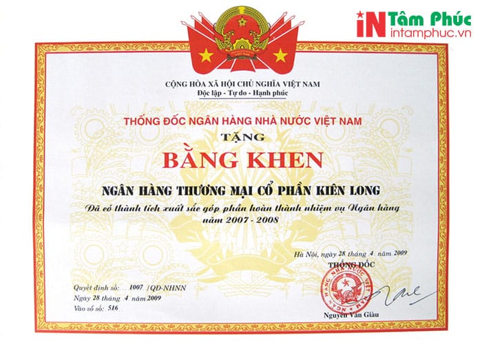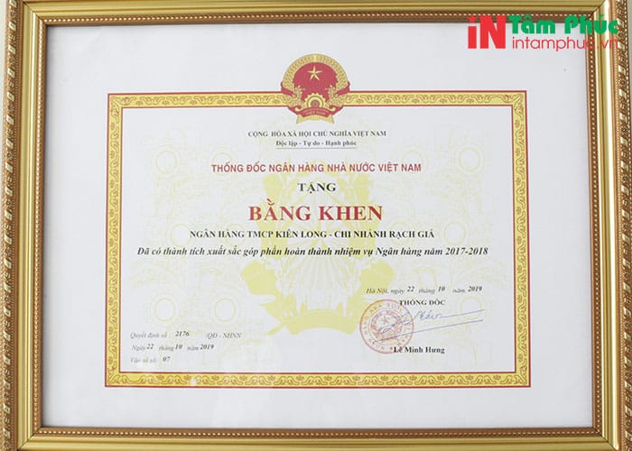 In bằng khen cho ngân hàng