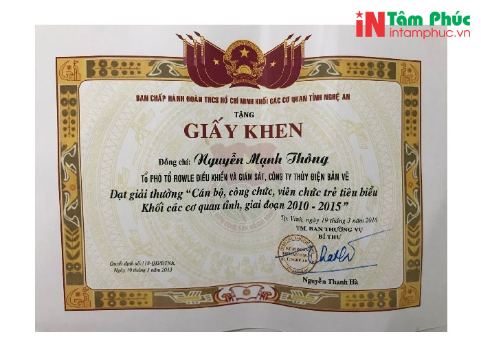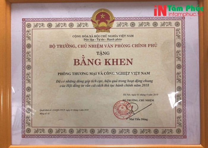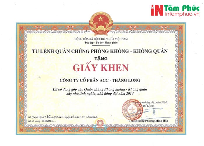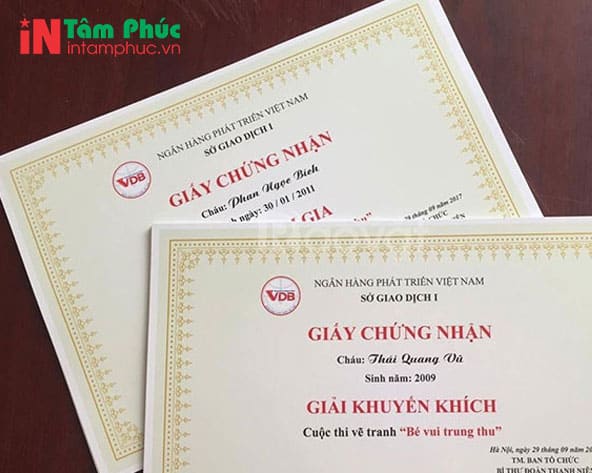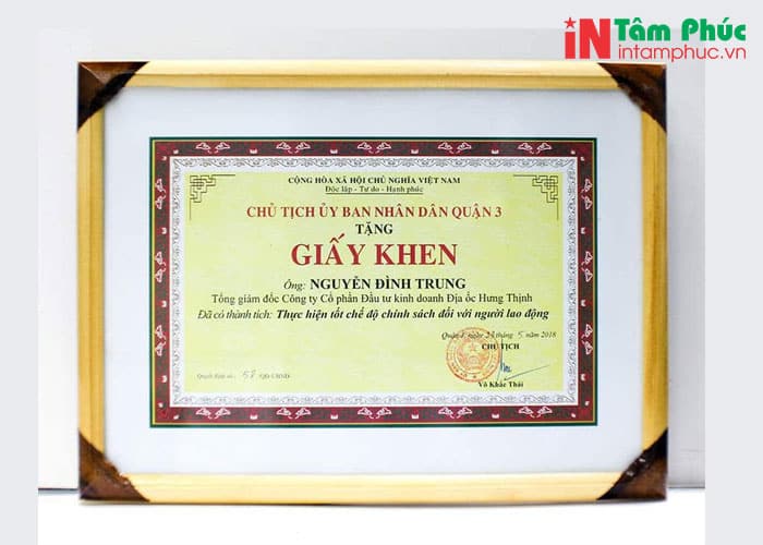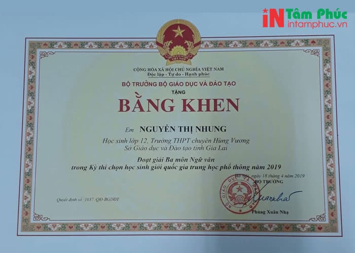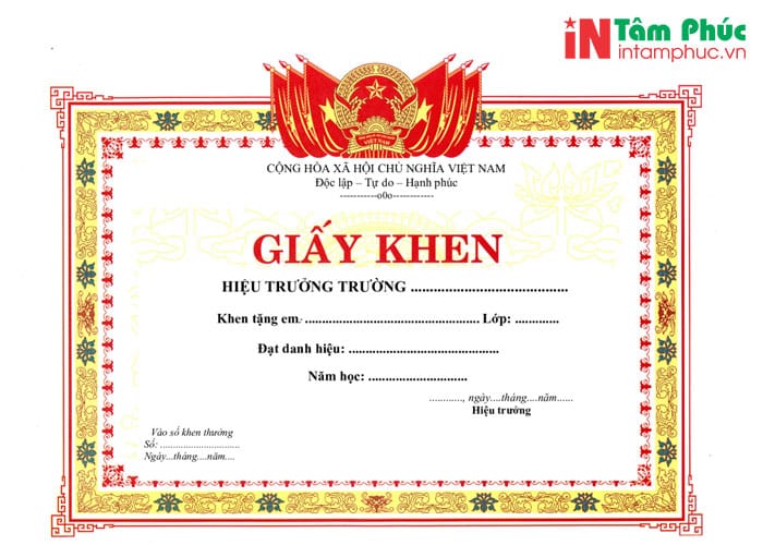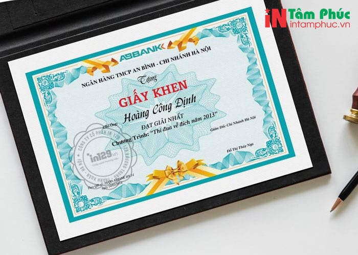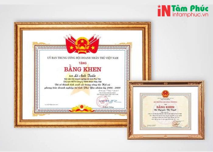 Dịch vụ in giấy khen tiêu biểu nhất của Tâm Phúc:
